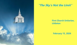 “The Sky’s Not the Limit” February 15, 2026 Deborah Niles Emma Bruns Riffelmacher Jim Nehring Martha Childs Rev. Lara Hoke Thea Shapiro stewardship Time for All Ages View SHARE ON Twitter Facebook Buffer LinkedIn Pin It Leave a Reply Cancel replyYour email address will not be published. Required fields are marked *Comment * Name * Email * Website Δ Continue Reading “Joy, Resilience, & Love” “Jack Kerouac’s Roads and Ours”